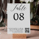 Clássico clássico Elegante preto, número da mesa de casamento da caligrafia romântica branca, com código QR para procurar seus convidados para compartilhar suas fotos.
