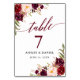 Numeração De Mesa Calliografia Floral Burgundy Casamento
