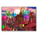 Este produto apresenta a minha design "Candyland". Mostra uma casa de pão de gengibre numa paisagem de mousse de chocolate com lábios coloridos, ursos de goma, canas de açúcar, pralinés, algodão doce ao longo de uma estrada de chocolate.