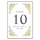 Estes cartões de números de mesa de casamento elegantes e na moda apresentam uma simples imagem floral pintada por aquarela em amarelo-ouro e verde-sábio. Fácil de personalizar para o seu casamento ou outra ocasião especial.