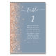 A borda esquerda desta elegante e moderna carta de números da mesa de casamento apresenta uma borda falsa de pêssego. A palavra "mesa" aparece em um guião branco e branco de escrita manual sobre um fundo azul empoeirado. Adicione os nomes dos seus convidados que estão atribuídos a cada mesa.
