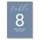 Números de mesas de casamento azuis e elegantes modernos.