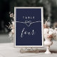 Eleve sua recepção de casamento com nosso número de tabela azul marinho chic. Sua design simples e minimalista apresenta um romântico coração de corda prateada e um roteiro de caligrafia moderno, oferecendo um toque elegante às suas mesas.