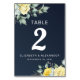 Numeração De Mesa Casamento azul-marinho floral de rosas amarelas