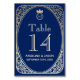 Número da Mesa de Casamento Azul Naval e Dourado Elegante. Elegante, sofisticado, com classe.
