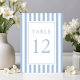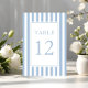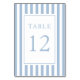 Número da Mesa de Casamento Azul Pó Listrado Elegante.