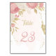 Flores rosas e brancas com ouro folhas botânicas número da mesa de casamento. Os detalhes de brilho são simulados.