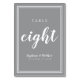 Esta design foi criada para comemorações íntimas de casamento. O design 8 da Tabela de Casamentos simples, minimalista e elegante apresenta um design contemporâneo com uma dupla borda de quadros em branco nítido sobre uma cinza de tendência. O design de chic oferece eterno, mas sofisticação moderna. Personalize a design de mesa de casamento com seus detalhes de casamento em letras brancas nítidas e roteiro. A parte traseira da placa é uma duplicata da parte frontal. Encomenda um para cada mesa com os números de tabela individuais. O Mesa ONE to TEN foi projetado individualmente e está disponível na minha loja InvitationSuites no Zazzle. Embora tenha criado especificamente a um local menor, se precisar de números adicionais, envie-nos um e-mail para InvitationSuites@gmail.com.