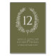 Coroa oval elegante branca em verde-azeitona mudo com número de mesa de casamento de texto branco. Edite este cartão com seus próprios nomes e detalhes de casamento e número da tabela. Você deve alterar o número para cada número de tabela necessário e adicioná-lo ao seu carrinho, um de cada vez. Os descontos de quantidade podem ser aplicados assim que você adicionar todos os itens ao seu carrinho. Outros itens correspondentes estão disponíveis. Projetado por www.mylittleedenweddings.com