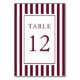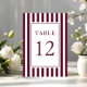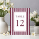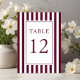 Número da Tabela de Casamento Burgundy Listrado Elegante.