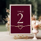 Numeração De Mesa Casamento Burgundy Vermelho Romântico