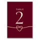 Adicione um toque de elegância ao seu reception com o nosso Número de Mesa de Casamento Burgundy Simples e Minimalista. Com um design romântico e sofisticado, esta peça elegante é adornada com um coração de corda dourada e uma caligrafia moderna. Perfeitamente combinando sofisticação e romance, garante que as configurações das suas mesas sejam tão elegantes quanto memoráveis.