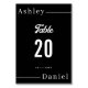 Este elegante número preto e branco da mesa de casamento é perfeito para um casamento moderno. o simples design apresenta uma caligrafia branca elegante em um fundo preto.