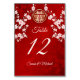 Este cartão de número da mesa de casamento chinesa apresenta flores de cereja rosa poeirentas bonito e um símbolo de felicidade dupla dourada num fundo vermelho brilhante. Produtos de casamento chineses correspondentes disponíveis.