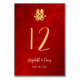 Esta simples carta de número da mesa de casamento chinesa moderna mostra um símbolo de dupla felicidade de ouro artístico num fundo vermelho brilhante. Produtos de casamento chineses correspondentes disponíveis.