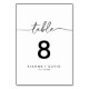 Este clássico de mesa de casamento preto branco é perfeito para um casamento moderno. O design simples e elegante apresenta a tipografia de scripts clássicos e ricos em preto e branco. Este é um número de tabela de dois lados. Adicione cada número de tabela de que você precisa ao seu carrinho individualmente.