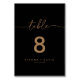 Este clássico de ouro negro é perfeito para um casamento moderno. O design simples e elegante apresenta a tipografia clássica e de rico em ouro. Este é um número de tabela de dois lados. Adicione cada número de tabela de que você precisa ao seu carrinho individualmente.