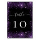 Um fundo preto decorado com faíscas roxas. Texto branco. Personalize e adicione seus números de tabela. Adicione seus números um a um.