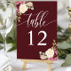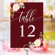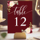 Numeração De Mesa Casamento com Caligrafia Floral de Profundo Merlot