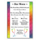 Adicione um pequeno pedaço de cor ao seu casamento moderno preto ou não tradicional com estas mesas duplas. A parte frontal apresenta um número de tabela fácil de ver enquanto a parte traseira exibe o menu do bar. Escolha qualquer cor de fundo que você quiser (mostrada aqui com um azul-céu na frente e branco no verso). Escolha entre o coração fornecido ou a borboleta, ou carregue sua própria imagem para torná-la pessoal extra. O texto é 100% totalmente personalizável. Use os campos modelo para edições rápidas; clique em "personalizar mais" para alterar as cores, tamanhos e posições da fonte.