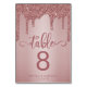 Placa de Número de Tabela de Casamento Glitter Dourado rosa com falso brilho em tons de ouro rosa, massa e cor-de-rosa pincelada em um elegante fundo metálico rosa. Seus detalhes, aliados à nossa tipografia moderna, com guião chique, fazem disso o papel perfeito para seu caso elegante ou casamento. Entre em contato conosco em cedarandstring@gmail.com se precisar de assistência com o design ou produtos correspondentes.