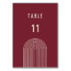 Placa de número de tabela moderna em vermelho escuro de baga e branco claro com tipografia forte e um arco de boho na parte traseira do cartão. Personalize esta mesa de casamento para ajustado das suas necessidades, altere elementos de texto e cores, se desejar. Use este cartão de número de tabela também para outra comemoração como aniversário, evento de restauração etc. A suíte de casamento está disponível no meu compro.