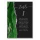A borda esquerda desta elegante e moderna carta de números da mesa de casamento apresenta um caçador de cor verde-d-água, borda cortada com falso brilho prateado. A palavra "mesa" aparece em um guião de escrita manual de cinzas prateadas sobre fundo preto. Adicione os nomes dos seus convidados que estão atribuídos a cada mesa.