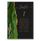 A borda esquerda desta elegante e moderna carta de números de mesas de casamento apresenta um caçador de aquarela verde agate borda com falsa brilho dourado. A palavra "mesa" aparece em um guião de escrita manuscrita dourada sobre fundo preto. Adicione os nomes dos seus convidados que estão atribuídos a cada mesa.