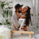 Numeração De Mesa Casamento de 2 Fotografias com Script Mínimo Moder