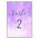 Número da tabela de casamento do roteiro de água roxo. Adequado para aniversário, aniversário e qualquer outra festa.