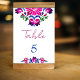 Azul cor-de-rosa azulejos mexicanos Talavera Números de mesa de casamento modelo com nomes de hóspedes no verso, negrito colorido salve o padrão de azulejo branco do cartão