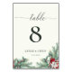 Guie seus convidados em estilo com este Número da Mesa de Casamento Berries e Pine Greenery de inverno. Apresentando galhos de pinheiro pintados à mão, bagas ocas e verde-azul, esta design elegante é perfeita para casamentos no inverno, recepções de Natal ou comemorações sazonais. Impresso em estoque de cartolina de alta qualidade, ele combina encanto festivo com elegância de eterno, fazer uma bela adição à sua capa de mesa de casamento. Par com cartões de lugar, menus e artigos de papelaria para um olhar coordenado.