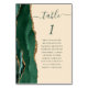 A borda esquerda desta elegante e moderna carta de números da mesa de casamento apresenta uma esmeralda verde aquarela agate borda com falsa brilho dourado. A palavra "mesa" aparece em um guião verde de escrita manual em um fundo bege de champanhe. Adicione os nomes dos seus convidados que estão atribuídos a cada mesa.