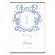 Estes cartões de número da mesa de casamento, elegantes e azuis, são perfeitos para a sua recepção de casamento! A crista barroca ornamentado é elegante e romântica. Coloque-os em todas as mesas do seu local para que os convidados possam encontrar a mesa que foram atribuídos à festa. É tão fácil fazer com que essas cartas sejam suas. Basta selecionar "Personalizar este Modelo" e digitar suas informações e o número da tabela e adicionar ao carrinho. Repita o procedimento para quantas mesas você terá na sua recepção.