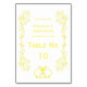 Números de mesa de casamento amarelo sinalizam design. Você pode personalizar este número da mesa de casamento cor de limão com seus próprios detalhes de casamento. Se precisar de ajuda para personalizar, entre em contato conosco através do link desta página. Bells scrollwork design personalizado de cor amarela da tabela de casamento
