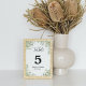 Número da mesa de casamento com eucalipto verde com ponto de ouro. Este convite para o aniversário de chic pode ser personalizado com seu especial