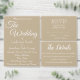 Guie seus convidados de recepção de casamento para a mesa com este simples cartão de número de tabela de estilo que apresenta letras brancas e estilizadas em um plano de cores khaki de tendência. Design está em cada lado da placa. Edite seu cartão para alterar o número da tabela, os nomes dos casais de casamento e a data. Cartões de pedido separados para cada número de tabela.