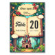 Este elegante número da mesa de casamento ao estilo do conto de fadas é perfeito para um casamento moderno. A design apresenta uma floresta antiga encantada, uma ilustração do castelo e uma caligrafia negra sobre um fundo temático no livro.