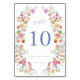 Este cartão de número da tabela de florais de cor aquosa apresenta delicados floresces pastéis, perfeitos para um casamento romântico, vintage ou com temas de jardim. Oferece um toque personalizado e elegante para sua celebração. O texto personalizável e as cores fazem dele um eterno e uma escolha artística para o seu dia especial.