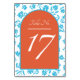 Numeração De Mesa Casamento de Flores Azuis Larona Sunset Orange