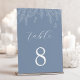 Guie seus hóspedes aos seus assentos com este design personalizado de números de tabela, com excelentes botânicos desenhados à mão. O fundo azul poeirento sereno exibe lindamente a delicada folhagem branca, criando um ponto focal tranquilo e elegante para cada mesa. Esta encantadora arte botânica adiciona um toque sutil de sofisticação natural, melhorando a atmosfera de sua recepção com estilo sem esforço.