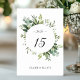 Este cartão de número da mesa de casamento apresenta cor d'água, eucalipto, folhas verdes e um quadro circular. Para personalização mais avançada deste design, clique no link "Personalizar mais". Itens correspondentes também estão disponíveis.