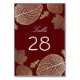 Ouro elegante e queda de burgata folhas cartões de número da mesa de casamento