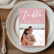 Este empoeirado número da mesa de casamento cor-de-rosa apresenta sua foto de noivado casal e uma delicada tipografia branca para uma cerimônia de tarde romântica para uma noiva feminina que gosta de cores suaves e design de guião mínima. Números de tabela cor-de-rosa macio.