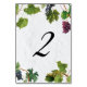 Um belo design com uvas rupestres e folhas de vinhedo no estilo mediterrânico, uma parede branca de lavagem da ilha grega. Um elegante número de mesa gráfica casamento vintage perfeito para casamentos no estilo grego Island, italiano e mediterrânico. Os convites de casamento e outros artigos de papelaria também estão disponíveis. Personalize o número e adquira cada número mesa individualmente de acordo com quantos números de tabela você precisa.