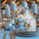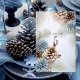 Número da mesa do casamento de inverno cartão com belas pinhas marrons, brancas e azuis, galhos de pinheiro e acentos dourados. Personalize o texto e a fonte ao seu gosto. #conteudogerado