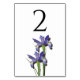 Este elegante design floral apresenta íris roxos. Os belos íris roxos estão posicionados abaixo do número da mesa. Este é o perfeito design de casamento floral ideal para qualquer tema de casamento. A Elegante design da mesa de casamento da íris com elementos modernos. Os convites de casamento e outros artigos de papelaria também estão disponíveis.