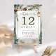 Número Da Mesa De Casamento De Lanterna Botânica Da Árvore Rústica De Inverno. Lindos números elegantes de casamentos no inverno com lanterna de neve com galhos de pinheiros botânicos e pinheiros. Esta design de casamento moderna personalizada pode ser facilmente personalizada com os seus próprios detalhes de casamento.