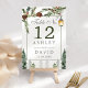 Número Da Mesa De Casamento De Lanterna Botânica Da Árvore Rústica De Inverno. Lindos números elegantes de casamentos no inverno com lanterna de neve com galhos de pinheiros botânicos e pinheiros. Esta design de casamento moderna personalizada pode ser facilmente personalizada com os seus próprios detalhes de casamento.