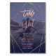 Foto de opacidade azul marinho escuro rosa Dourada e listras geométricas opacas de ouro rosa terrarium frame número da mesa de casamento chic, perfeito para temas elegantes e luxuosos de casamento, queda e casamento no inverno, carregue sua foto.